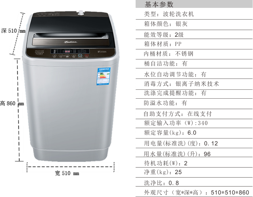 具有智能电机故障检测,当洗衣机电机有故障时洗衣机可自动报警,提醒运营商维修并自动切断洗衣机电源,防止火灾的发生。