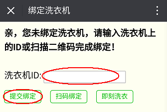2、如上图是未绑定洗衣机的界面,输入洗衣机ID,点击“提交绑定”即可。